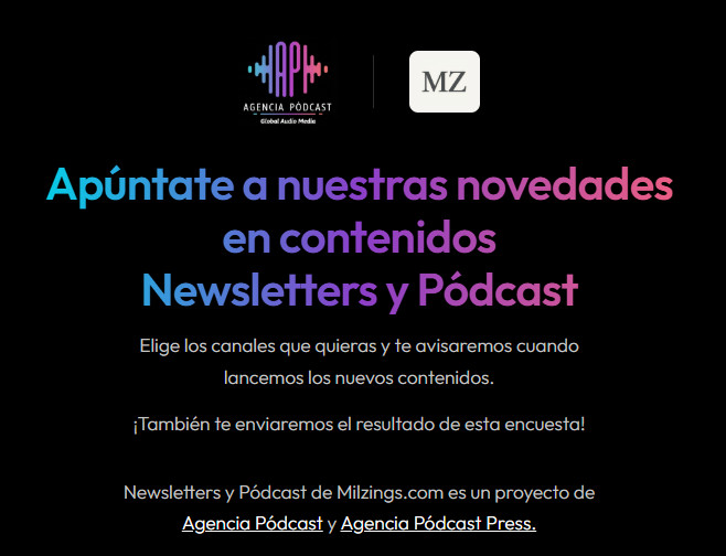 NB: Las newsletter son enviadas desde Milzings.com que somos los mismos de Agencia Pódcast, lo puedes leer en la política de privacidad.